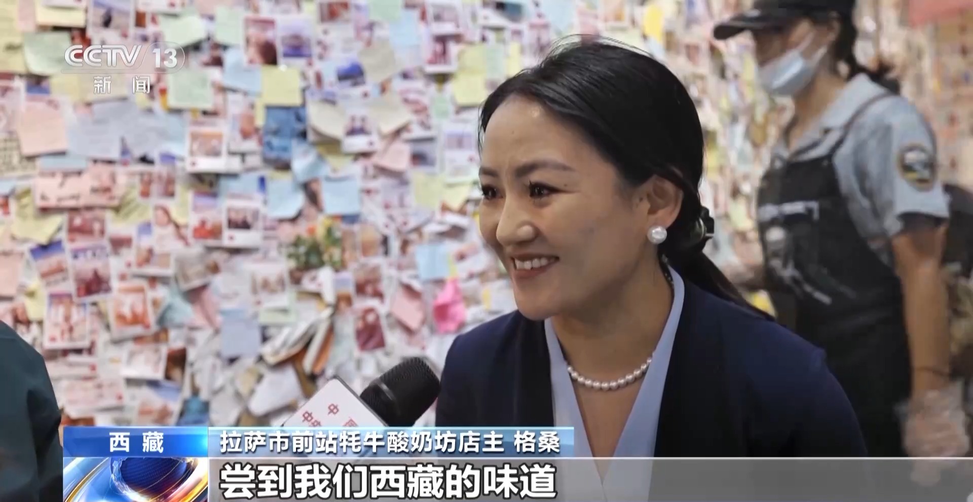 *拉薩市前站犛牛酸奶坊店主 格桑:*犛牛奶不能夠超過三個小時,超過三個小時就會壞。路好了之後,我們就可以到更遠的地方去採購更新鮮的犛牛奶,包括蛋糕上面的青稞粉是日喀則的,人蔘果是從那曲運過來的,現在交通便利了,所以我們可以用最地道的食材做最地道的酸奶,也能讓天南地北的遊客嚐到我們西藏的味道。