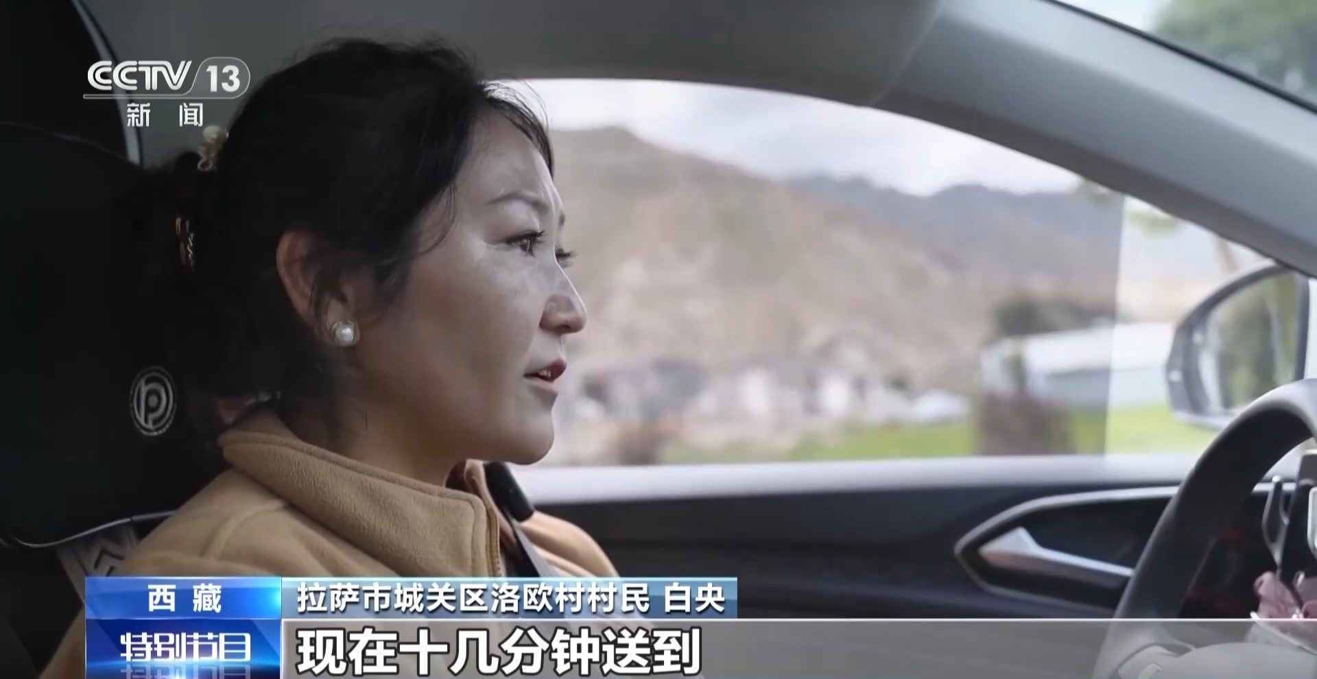 *拉薩市城關區洛歐村村民 白央:*之前爸爸送酸奶是騎摩托車送的,那時候路也不好,我們開得慢。三年前修了路以後,牧場都是通的,之前可能一個多小時,現在十幾分鍾送到。