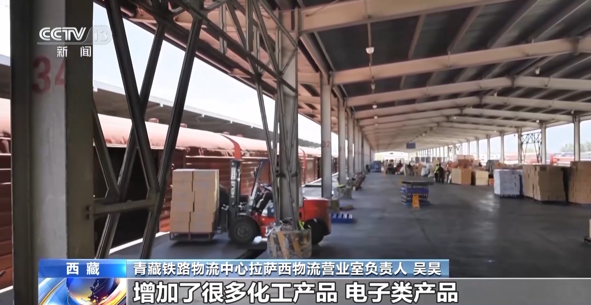 *青藏鐵路物流中心拉薩西物流營業室負責人 吳昊:*以前我們這邊到達量還是比較單一的,也就是一些糧食、飲料、建材之類的,現在到達的物品比較多元,增加了很多化工產品、電子類產品。