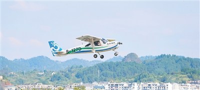 一架飛機從貴州黔東南苗族侗族自治州黃平舊州機場起飛。