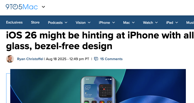 iOS 26 重大設計線索曝光,蘋果或推無邊框甚至環繞屏 iPhone
