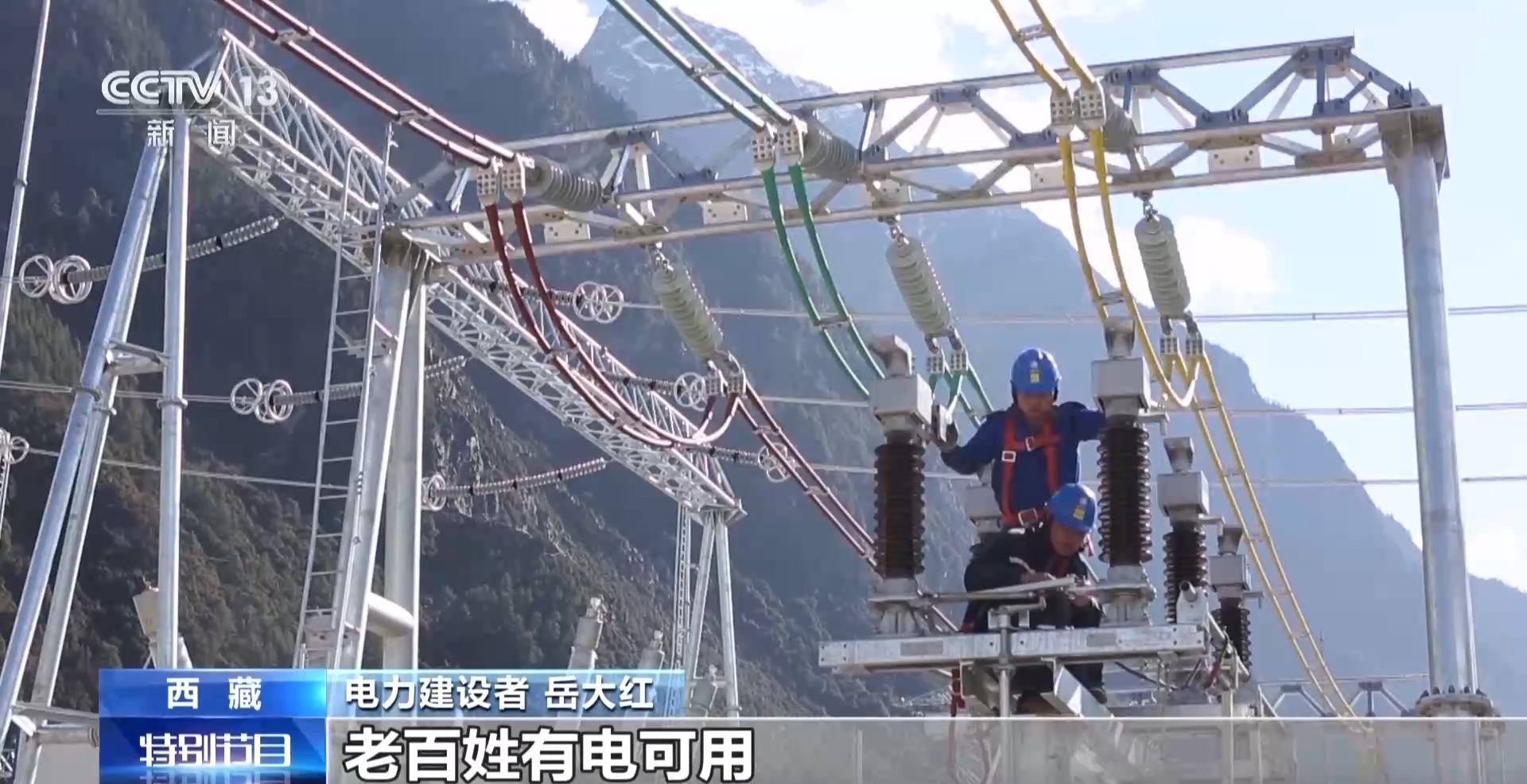 *電力建設者 嶽大紅:*當時我們去的時候,錯那只有幾户人,連住的地方都沒有,那段時間感覺這個活用我們俗話説,就不是人乾的活。但是回來了以後,看着萬家燈火,老百姓有電可用,還是倍感榮幸的,這些電可能都跟我有關係。