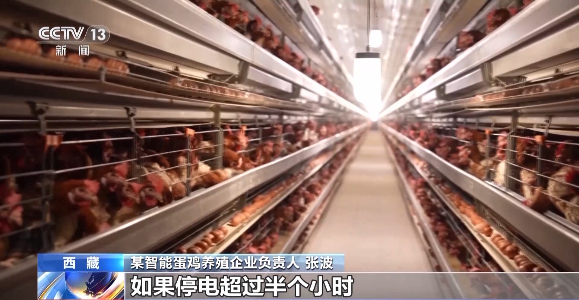 *某智能蛋雞養殖企業負責人 張波:*我們一棟雞舍是十萬只,這個廠設計規模是一百萬,如果停電超過半個小時,我們每一棟雞舍裏面的雞都會全部死掉。我們當初(2020年)來這裏考察的時候,電網是比較完善的,我們才會把廠建到這個地方。