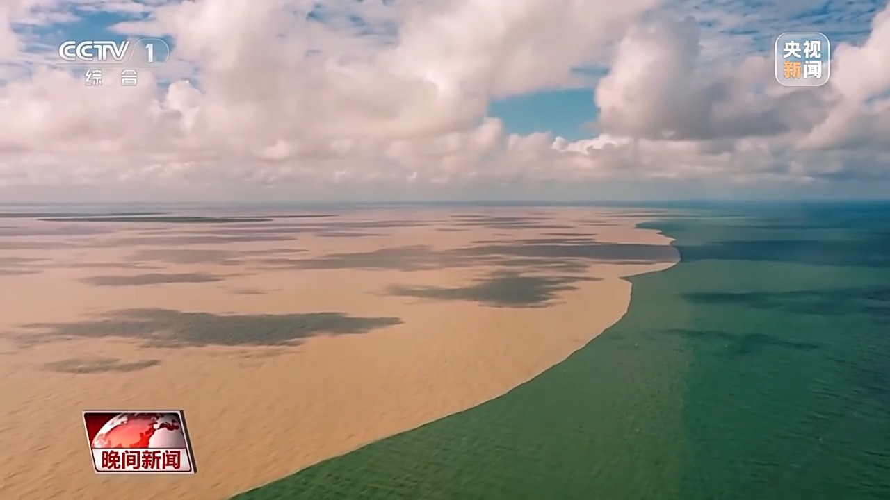 *總枱記者 李棟:*我現在是在山東東營的黃河入海口。這裏就是黃河奔流到海不復回的壯闊終點。通過鏡頭我們可以看到,黃河與渤海交匯處正呈現出獨特的黃藍交匯的自然景觀,如同巨大的“鴛鴦火鍋”。就在投入大海懷抱前的最後一程,黃河將攜帶的泥沙沉澱在這裏,打造出一片生命搖籃——黃河三角洲。