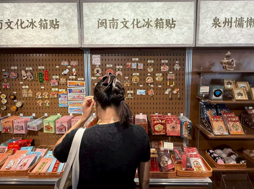 漫步新開幕的“簪花裏”文旅市集,集簪花攝影、文創集市、美食餐飲等業態於一體,小到冰箱貼,大到擺件、衣物等,500多款文創產品琳琅滿目。同時,豐澤區還與多家企業簽約蟳埔品牌聯名項目,涉及文創、茶葉、服飾、零食等多個品類,蟳埔文化將以更多元、更新穎的形式走進大眾視野。