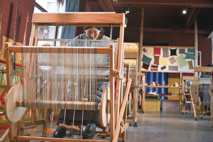 2022年底,江孜小組積極對接“上海工匠”郭秀玲及其高端羊絨品牌“沙涓”。雙方一拍即合,聯合啓動了“氆氌復興計劃”。胡發煒説:“這不僅能讓老手藝煥發新生機,更能帶動當地羣眾增收就業。”