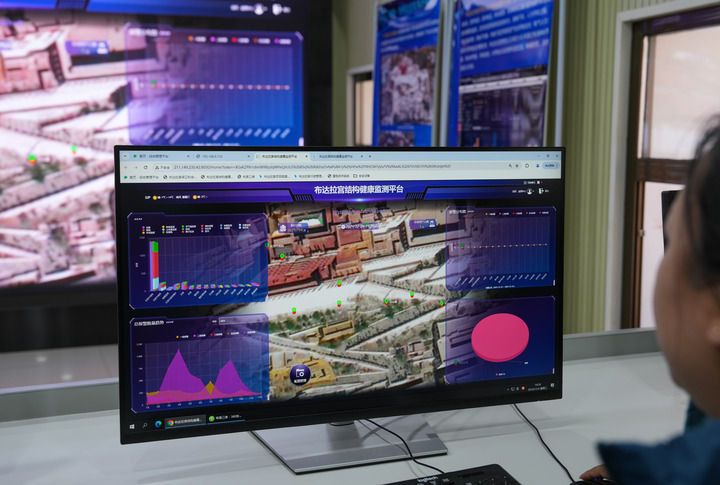 在布達拉宮監測中心,工作人員正忙着通過數字化平台,即時監控布達拉宮的“一磚一瓦”。