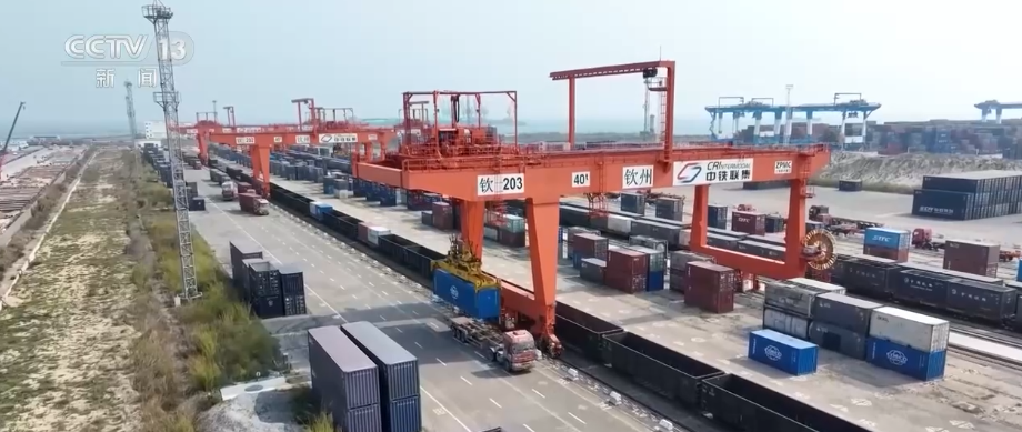 同時,鐵路與航運企業合作持續深化,鐵路95306平台上線60條多式聯運“一單制”產品線路。上半年,來自重慶的新能源汽車,以“鐵路籠車+滾裝船”的模式分批運抵欽州港,高效中轉助力新能源汽車加速“出海”。