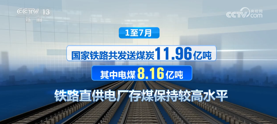 1至7月,國家鐵路共發送煤炭11.96億噸,其中,電煤8.16億噸,鐵路直供電廠存煤保持較高水平。礦建材料、冶煉物資、糧食運量同比分別增長13.6%、8.2%、12.7%。
