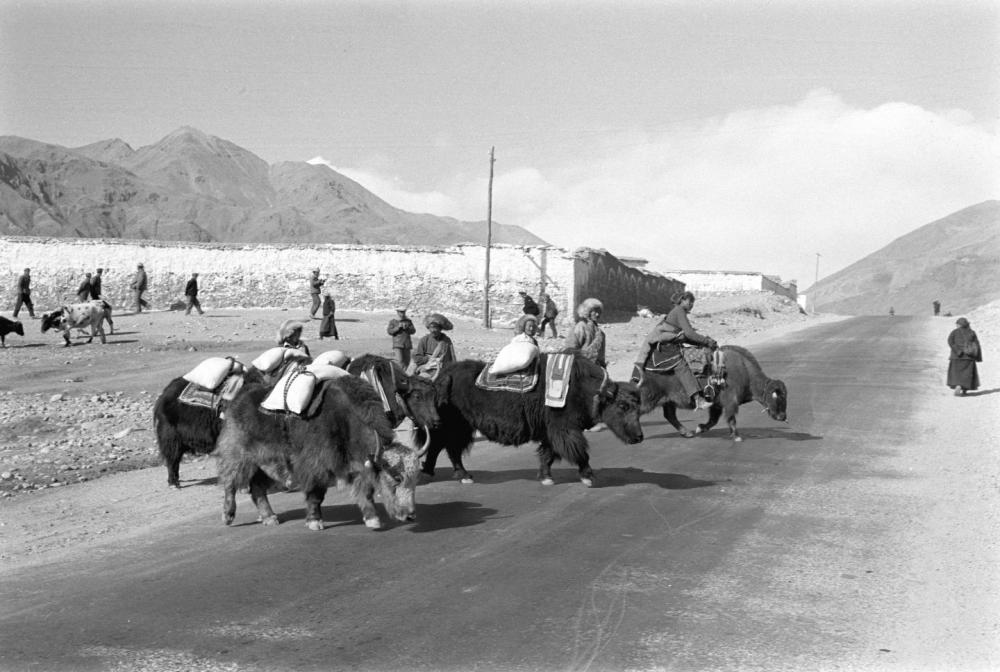 1984年1月,西藏堆龍德慶縣(現為堆龍德慶區)的牧民用犛牛把飼料馱回家。新華社記者 徐澎 攝