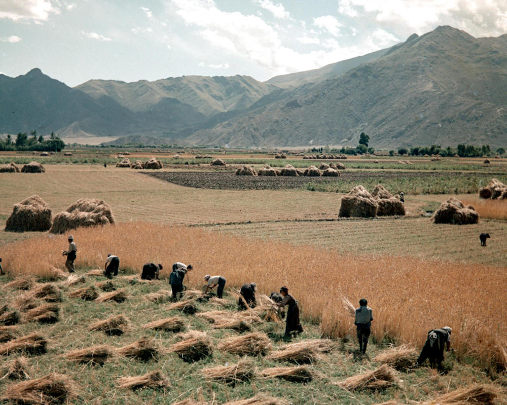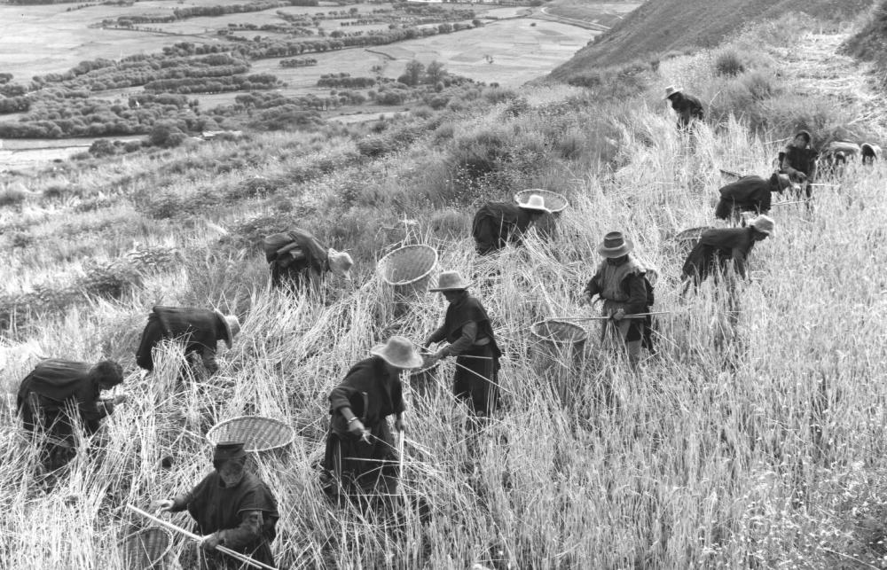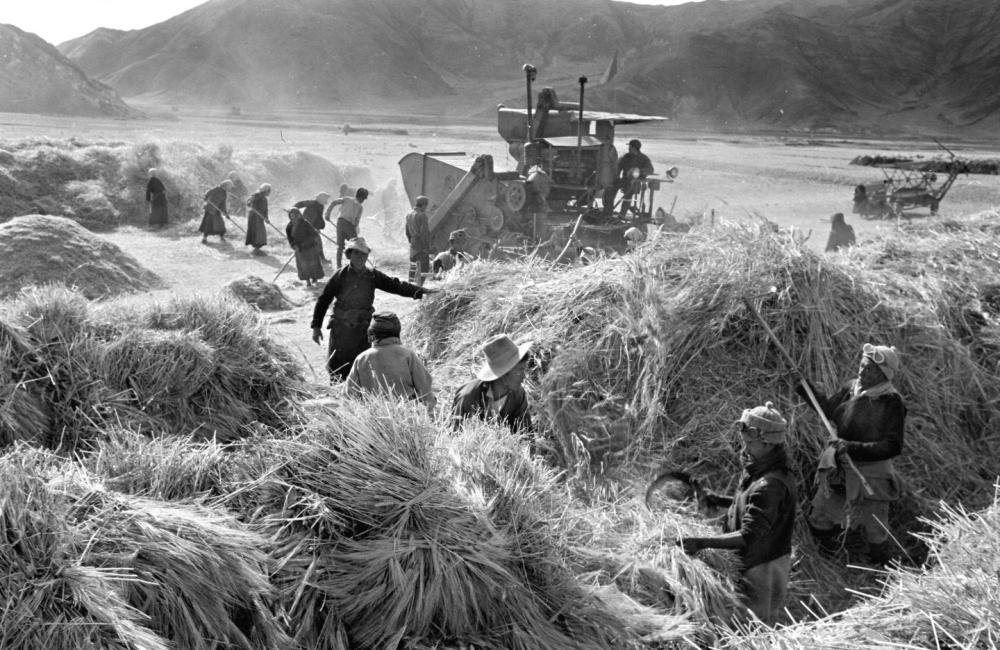 1965年,堆龍德慶縣(現為堆龍德慶區)南崗鄉互助組組員們在收割莊稼。新華社記者 吳祖政 攝