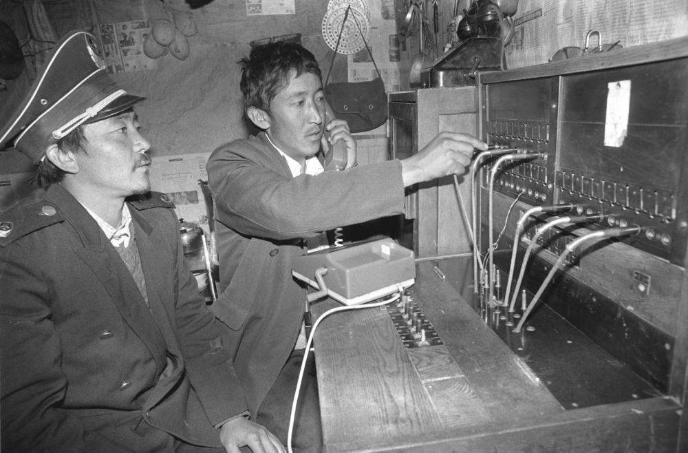 1994年4月16日,西藏江孜縣年堆鄉工作人員正在接電話。新華社記者 土登 攝