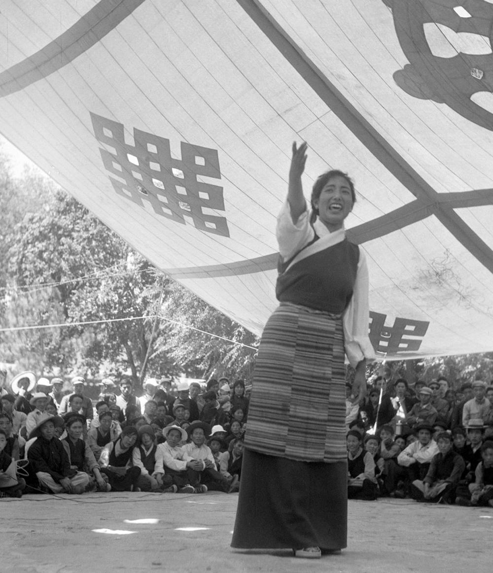 1965年10月,在西藏拉薩各族各界羣眾慶祝自治區成立聯歡會上,西藏文化工作隊隊員雍西在演出。新華社記者 林楓 攝