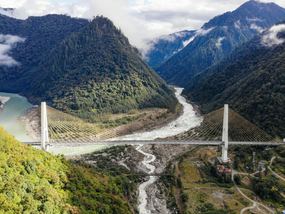 2019年10月27日拍攝的川藏公路通麥路段上的迫龍溝特大橋。新華社記者 孫非 攝