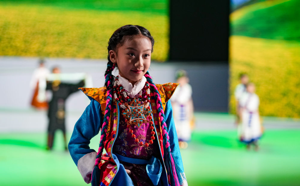 2025年1月5日,首屆西藏“衣脈相承”服飾文化週上小朋友展示藏式童裝。新華社記者 晉美多吉 攝