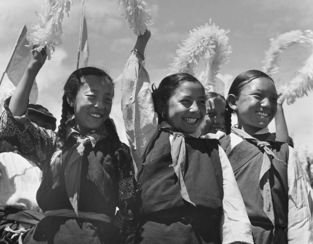 1965年9月,藏族兒童在西藏自治區成立大會上歡呼。新華社記者 馬競秋 攝