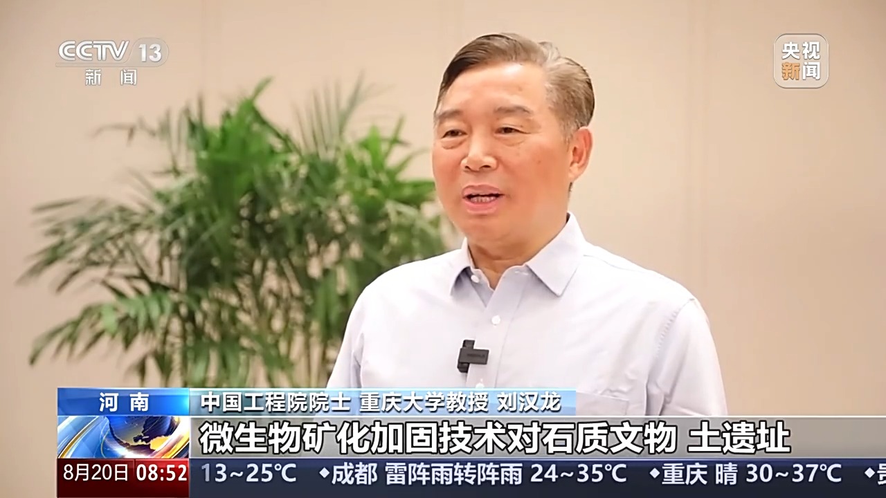 *中國工程院院士 重慶大學教授 劉漢龍:*通過大量實驗,團隊驗證了微生物礦化加固技術對石質文物、土遺址和可移動文物等修復的有效性和實用性,並且具有兼容性好、強度高、耐候性強、綠色環保等優勢。