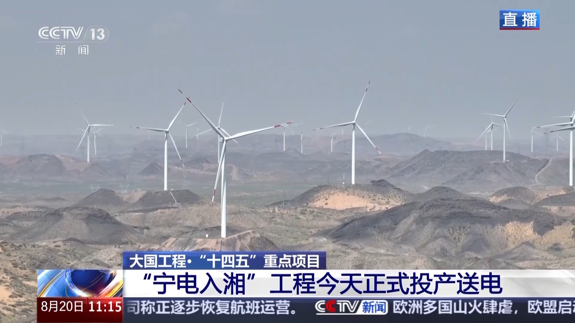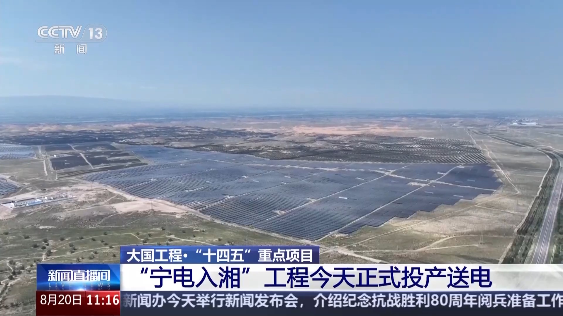 “寧電入湘”工程作為“西電東送”的重要組成部分,是我國“十四五”電力發展規劃的重點項目,是我國首條獲批的以輸送“沙戈荒”風電光伏大基地新能源為主的特高壓輸電通道,自6月29日凌晨圓滿完成168小時試運行,又經過一個多月輸送最高功率達400萬千瓦的電後,今天(20日)寧夏至湖南±800千伏特高壓直流輸電工程正式投產送電。