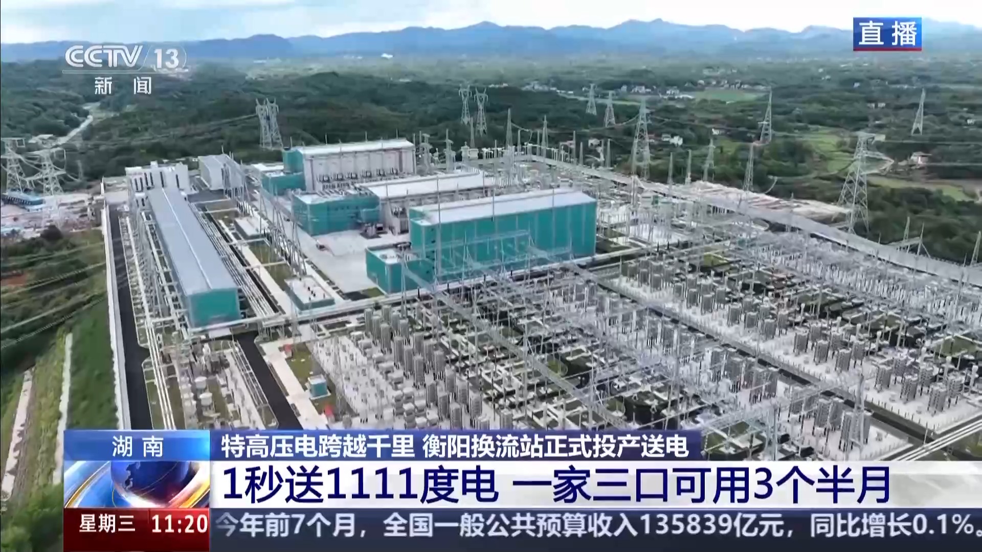 特高壓電跨越千里 衡陽換流站正式投產送電