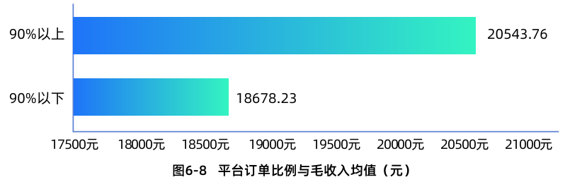 根據《報告》,平台訂單佔比90%以上的司機羣體,其月均毛收入明顯高於平台訂單佔比較低的司機羣體。其進一步比較了長途、短途司機收入情況,長途司機收入仍具有明顯優勢。