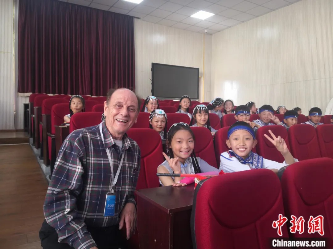 2023年5月,柯馬凱在林芝市第二小學和學生合影。受訪者供圖