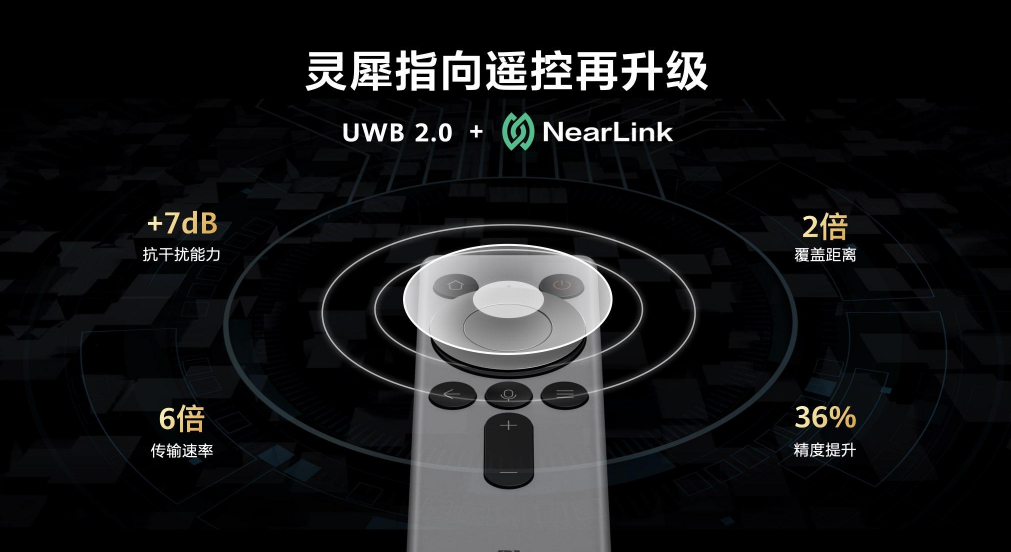 華為靈犀指向遙控2,搭載升級的UWB技術與星閃通信技術,將指向精度提升56%,光標幀率達到240Hz,遠超行業平均的60Hz水準,實現了更精準更穩定的“指哪點哪”的手機級操控體驗。