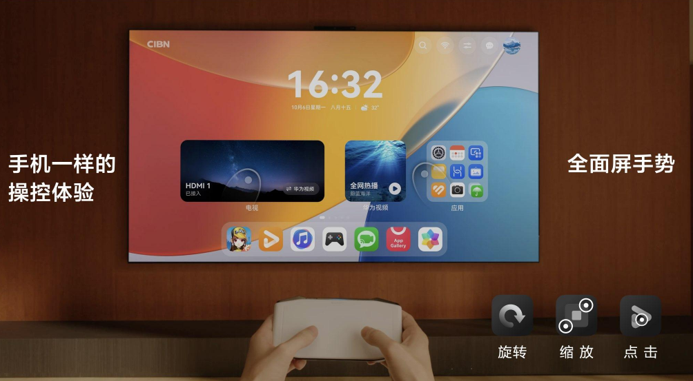 其更具創新性的靈犀懸浮觸控工具,革命性的採用328個手指檢測傳感器實現多指懸浮觸控技術,結合星閃技術,實現8ms超低延遲,精準識別手指獨立運動軌跡。另外,靈犀懸浮觸控操作邏輯完美復刻手機的全面屏手勢邏輯,比如,側滑即返回,底部滑即返回桌面、多任務,頂部滑即出現控制中心,滑動可控制音量、亮度等。用户學習成本低,能夠快速上手。