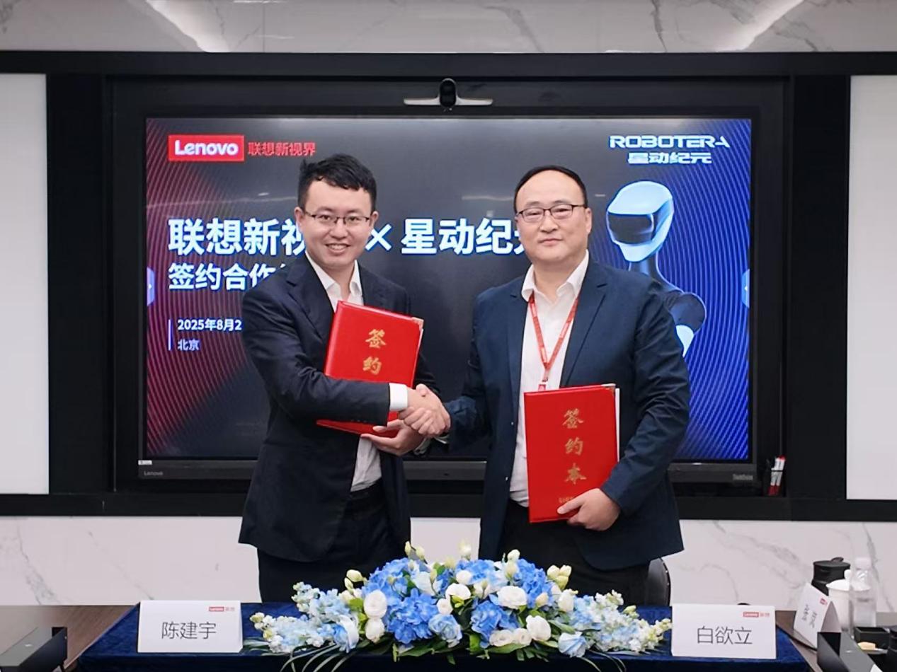 【環球網科技綜合報道】2025年8月20日,聯想集團旗下聯想新視界科技(北京)有限公司與北京星動紀元科技有限公司在聯想集團全球總部(北京)舉行戰略簽約儀式,聯合推出人形服務機器人智慧展廳解決方案。