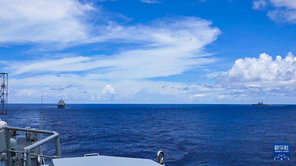 中俄“海上聯合-2025”聯合演習當地時間1日至5日在俄羅斯符拉迪沃斯托克附近海空域舉行。演習結束後,參與演習的中國海軍導彈驅逐艦紹興艦、綜合補給艦千島湖艦與俄羅斯海軍“特里布茨海軍上將”號大型反潛艦等3艘水面艦艇及2架艦載直升機組成聯合編隊,位西太平洋某海域組織海上聯合巡航。