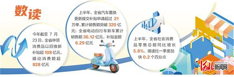 通過優化配套服務,營造良好市場環境,河北省各地持續做好以舊換新工作全流程跟蹤問效,換出了消費新活力,換出了增長新動能。今年截至7月23日,全省申領消費品以舊換新補貼超108億元,撬動消費額超828億元。
