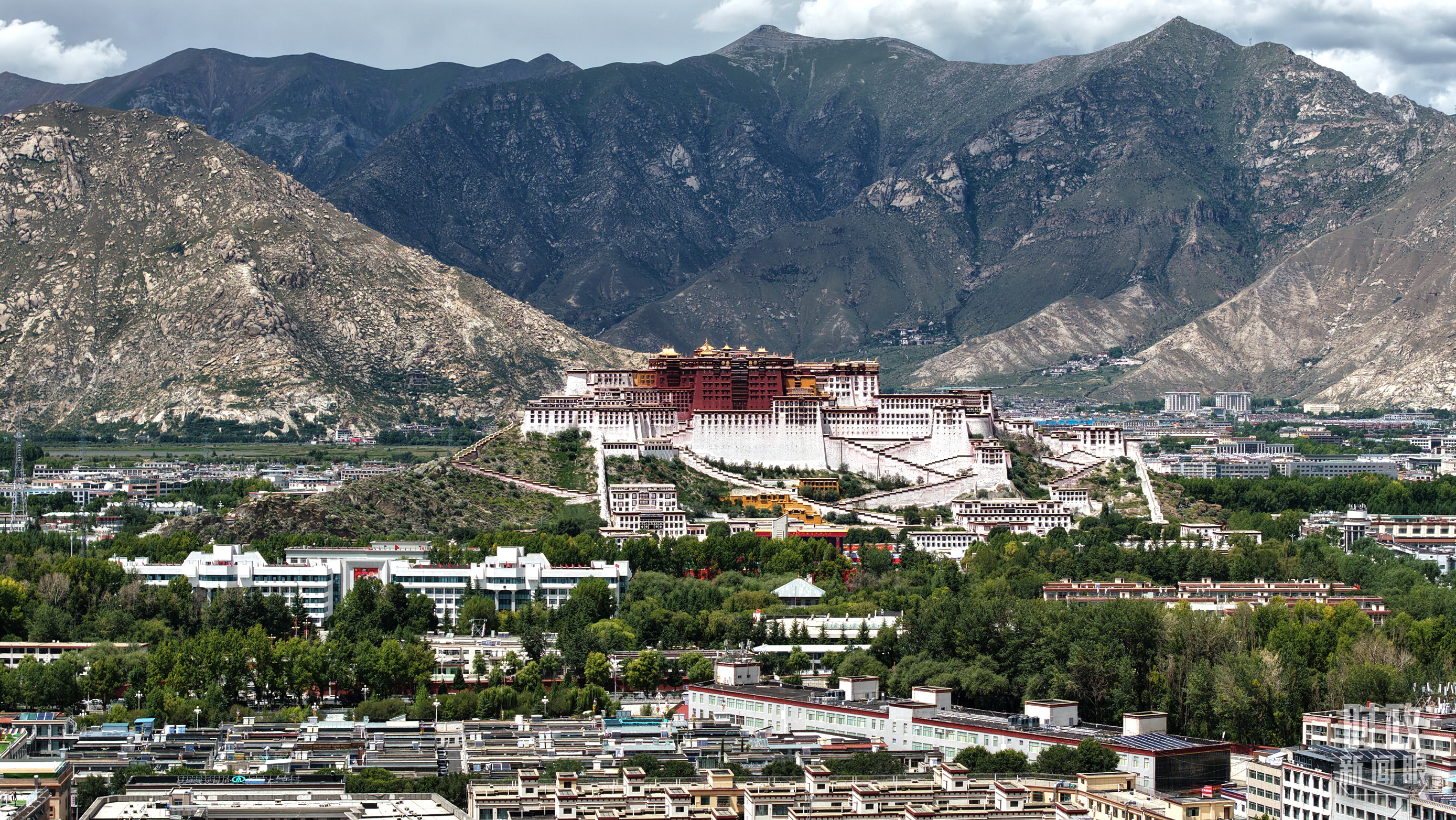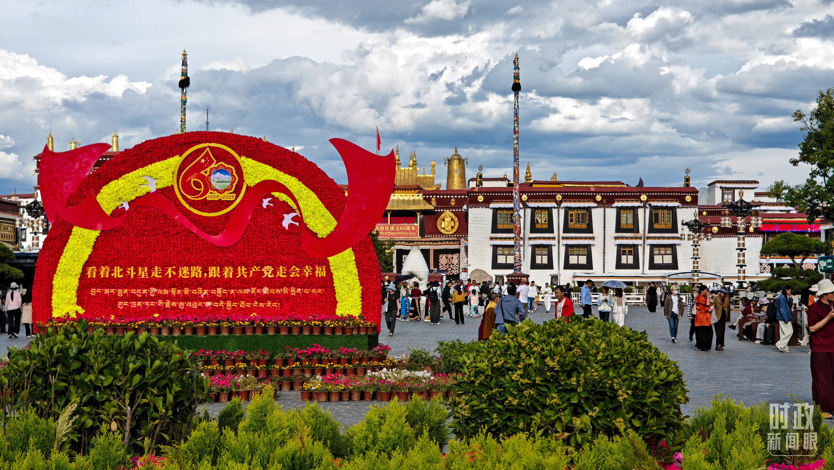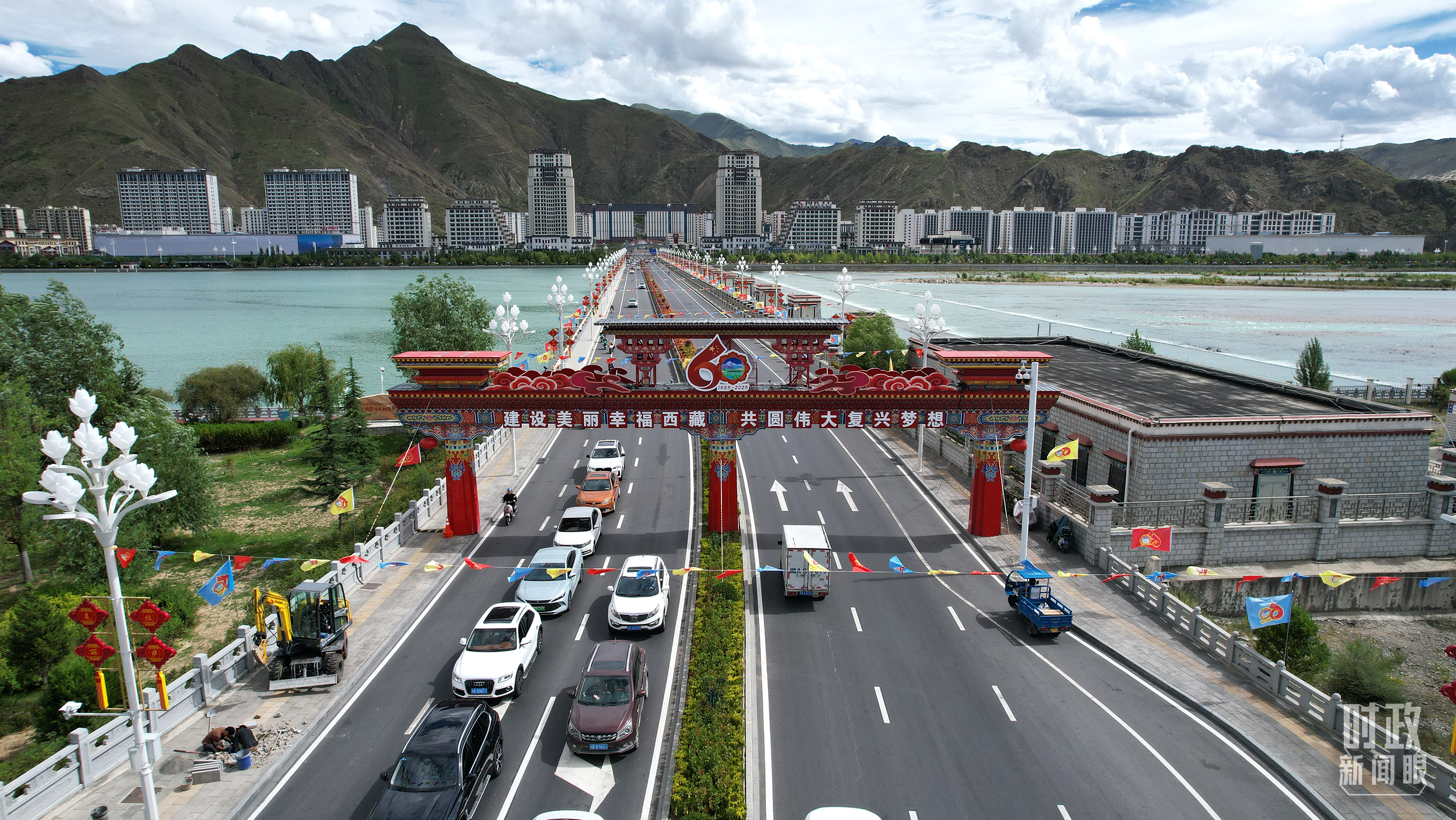 充滿節日氛圍的古城拉薩,從機場到住地主要街道兩旁彩旗舞動,各族羣眾手持紅旗、捧着哈達,齊聲歡呼。