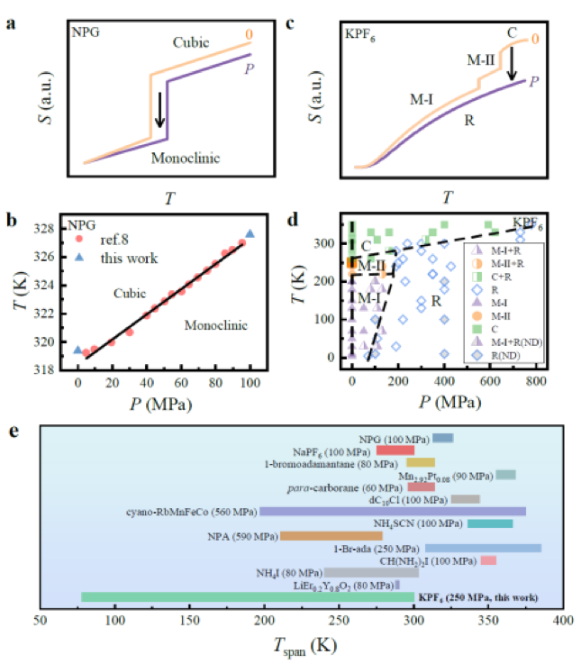 在這項研究中,科研人員在六氟磷酸鉀中首次觀測到“全温區壓卡效應”。實驗表明,通過施加壓力,這種材料可以在室温(約25℃)至液氮(-196℃)、液氫(-253℃)甚至液氦(-269℃)的寬温區持續實現製冷。