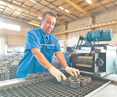 圖為邢亞軍在檢查螺母質量。本報記者 宋朝軍攝
