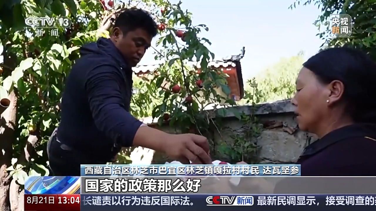 *西藏自治區林芝市巴宜區林芝鎮嘎拉村村民 達瓦堅參:*我對現在的生活很滿意,國家的政策那麼好。教育上面,孩子從幼兒園開始都是“三包”(包吃、包住、包基本學習用品)政策,看病90%可以刷醫保。