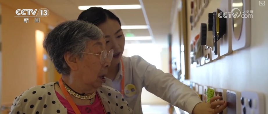 呂勤介紹,這面牆是多感官刺激撫觸類訓練牆。通過一定頻次,規律去做一些感統訓練的模式,減緩老人感官退化的速度。