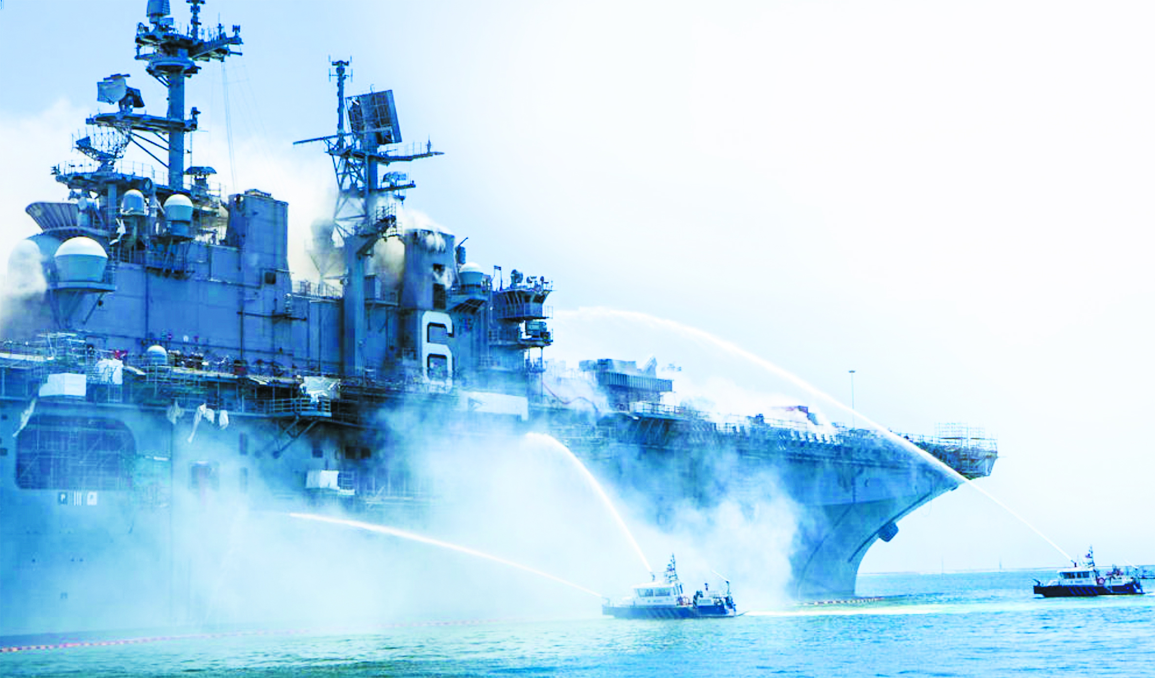 更嚴重的事故是在2020年大火中被毀的“好人理查德”號兩棲攻擊艦。這艘4萬噸級的“黃蜂”級兩棲攻擊艦是當時美國海軍在印太地區最活躍的主力艦艇之一,曾多次在南海興風作浪,充當美對華軍事施壓圍堵的“急先鋒”。它原本已經被指定升級為可以搭載F-35B隱形戰鬥機的“閃電航母”,但在當年7月的靠港升級大修期間,“好人理查德”號突發大火,遍及全艦的熊熊烈焰燒穿上層結構,艦身出現明顯傾斜。美國海軍緊急調動各方消防力量,經過整整4天的奮力撲救,才最終撲滅大火,但這艘大型戰艦已經被燒為廢墟,至少59名人員(36名船員及23名平民)受傷。最終,由於被高温炙烤後的艦體結構強度嚴重受損,維修成本過高,美國海軍不得不於當年11月宣佈“好人理查德”號提前退役報廢。