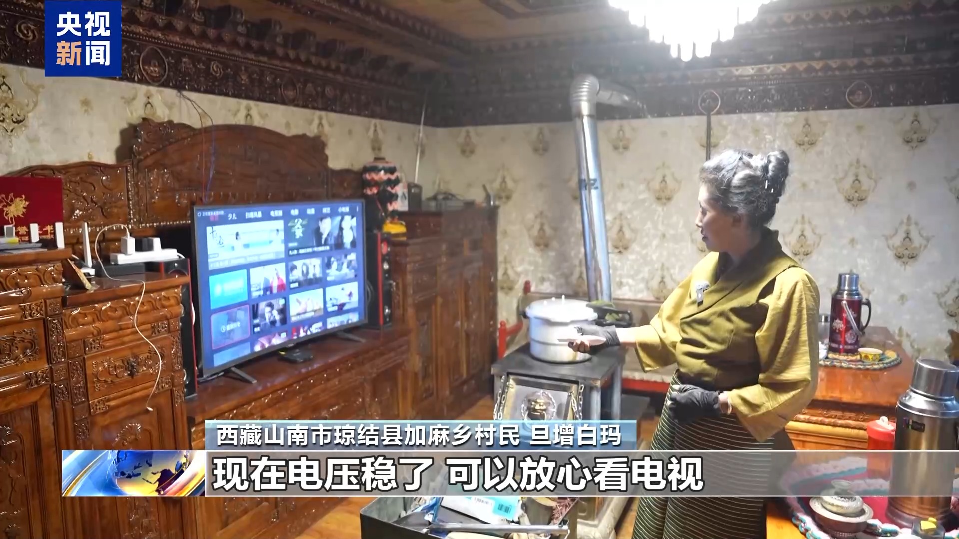 *西藏山南瓊結縣加麻鄉村民 旦增白瑪:*現在電壓穩了,可以放心看電視。而且還買了很多新家電,冰箱、洗衣機。
