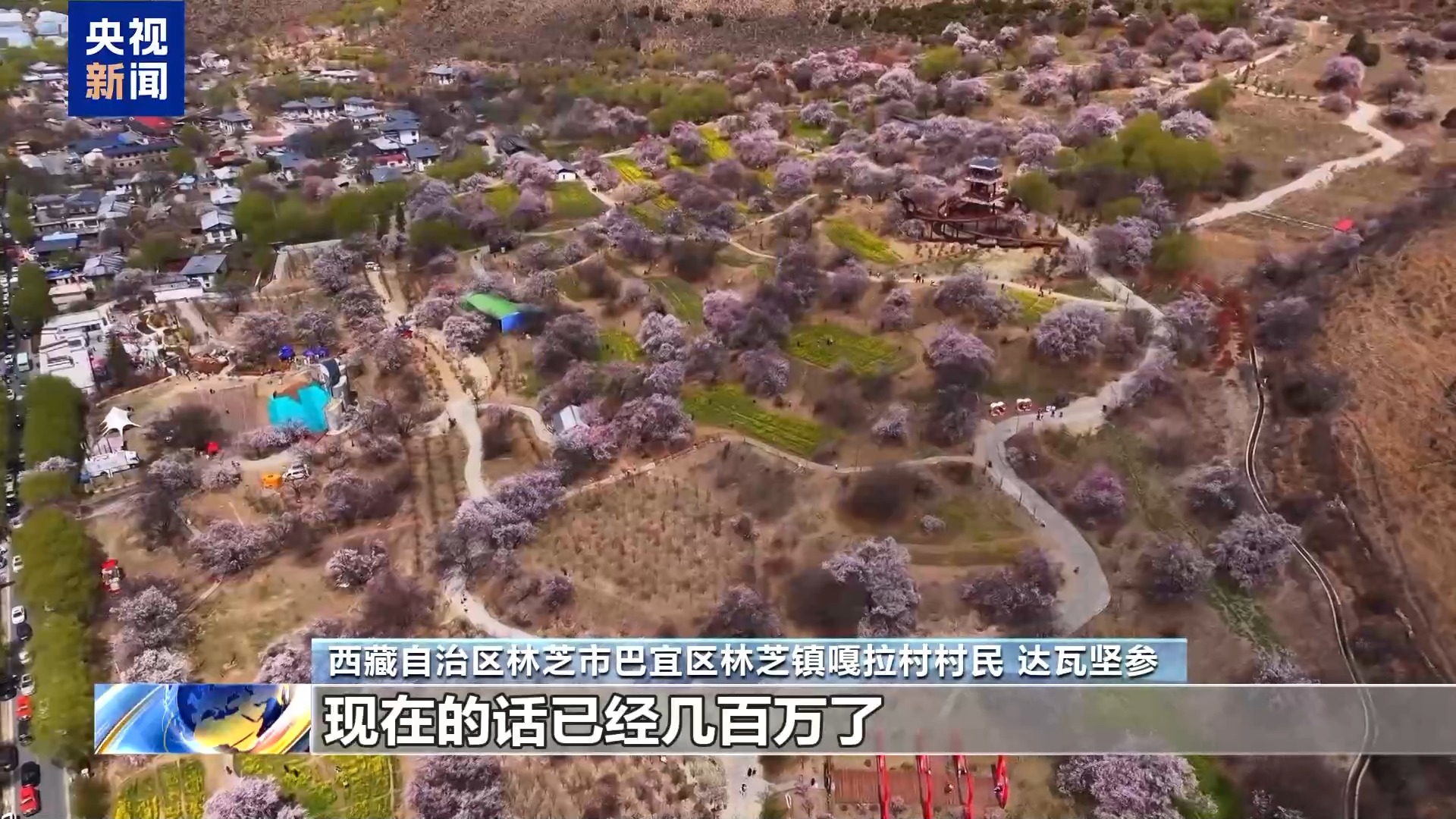 *西藏自治區林芝市巴宜區林芝鎮嘎拉村村民 達瓦堅參:*以前從桃花節開始搞起來的時候,全村收入幾百塊錢到幾千塊錢到幾萬塊錢,現在的話已經幾百萬了。
