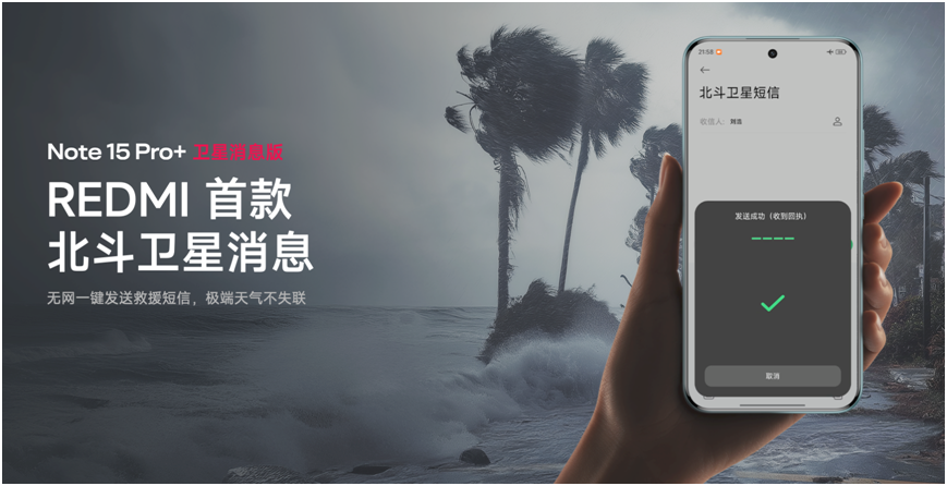 特別定製REDMI Note 15 Pro+衞星消息版,將旗艦機的北斗衞星能力首次下放 Note 系列。除支持常規文字短信外,還將額外支持語音、圖片兩種富文本,可在無法接收地面基站信號的極端地理位置下與外界取得聯繫。
