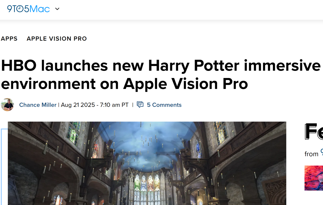 哈利・波特 “霍格沃茨禮堂” 沉浸式環境登陸蘋果 Vision Pro