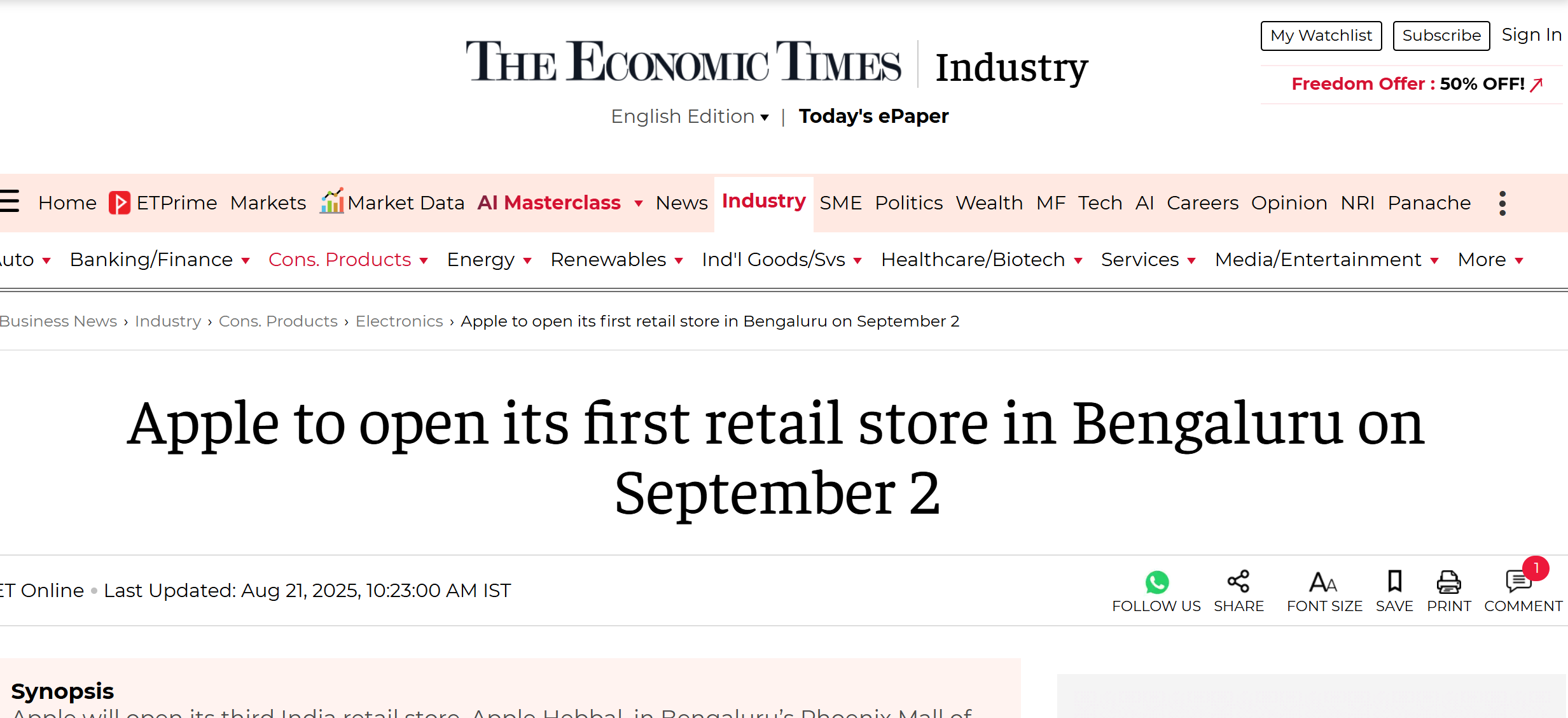 蘋果確認印度班加羅爾 Apple Store 新店 9 月 2 日開業