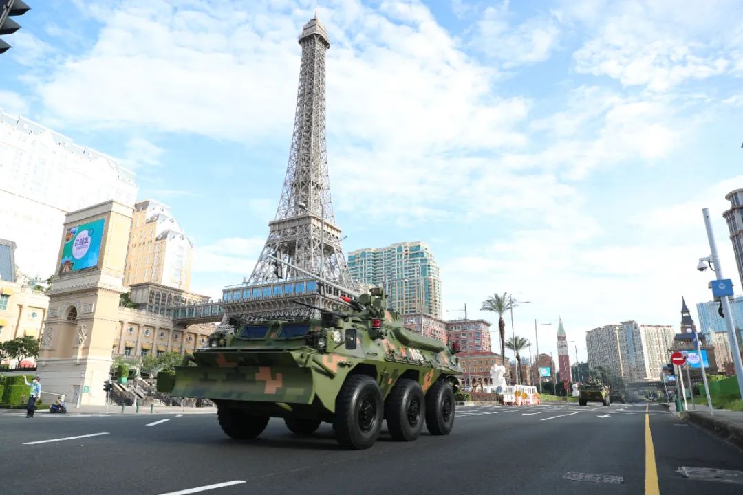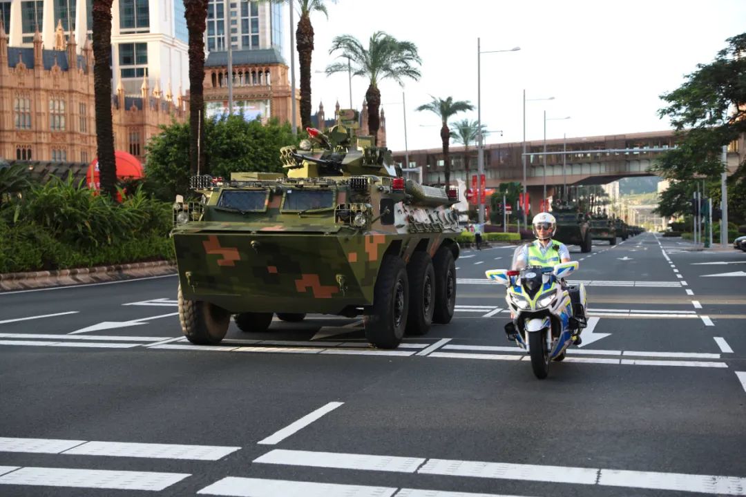清晨,輪換進駐澳門的部隊在珠海基地集結,參加歡送儀式。儀式現場,官兵們整齊列隊、士氣高昂,車輛有序編隊,部隊整裝待發。歡送儀式後,部隊按照戰鬥編組,以摩托化機動方式行進,通過橫琴口岸進入澳門。在澳門凼仔軍營,駐澳門部隊組織了防務交接儀式。