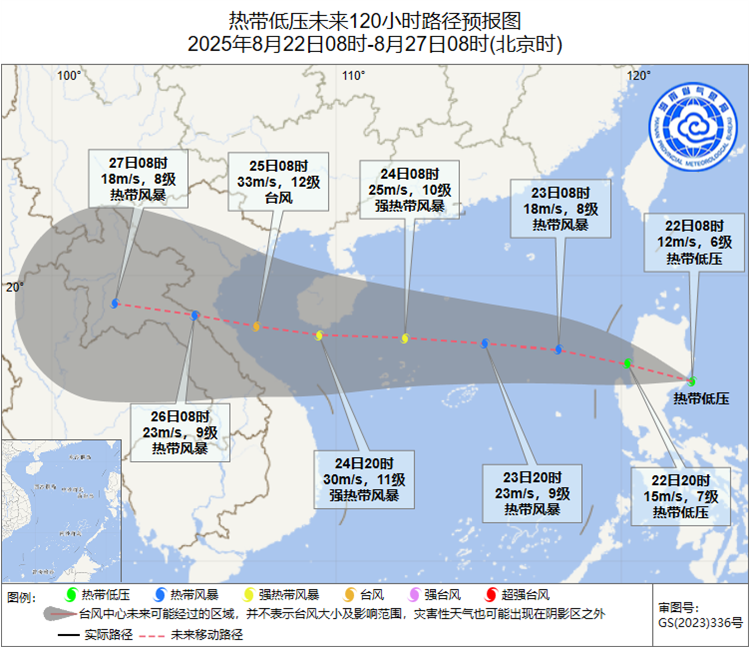 圖 熱帶低壓8月22日08時預報路徑圖