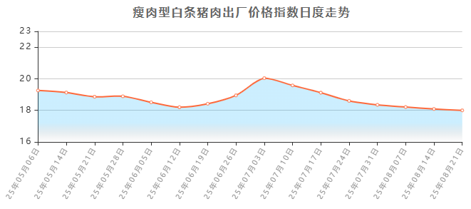 據國家發展改革委監測,近日全國平均豬糧比價跌至6:1以下,正式進入《完善政府豬肉儲備調節機制做好豬肉市場保供穩價工作預案》規定的三級預警區間。農業農村部數據顯示,2025年第33周(8月11日—8月15日),16省(直轄市)瘦肉型白條豬肉出廠價格總指數週平均值為每公斤18.08元,環比下跌0.8%,同比下跌34.8%,跌幅持續擴大。