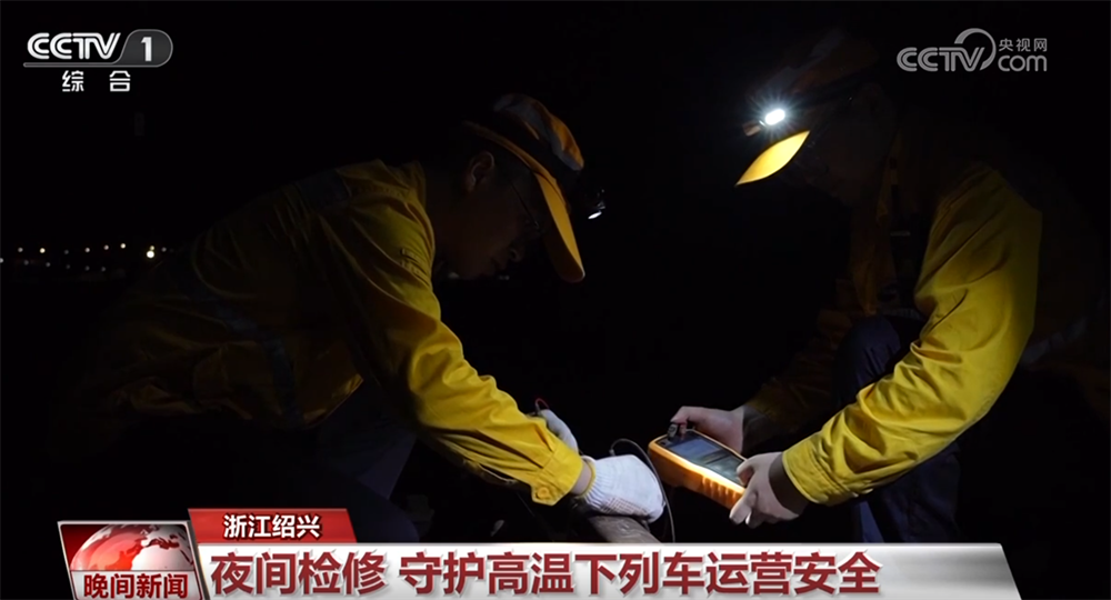近段時間,浙江多地出現持續高温天氣,最高氣温達到39攝氏度。長時間的暴曬讓鐵路鋼軌表面温度在白天時最高能達到近60攝氏度,容易出現脹軌現象。因此到了夜間,檢修工人需對道岔轉轍機、絕緣接頭等關鍵部位進行檢查,嚴密監控軌道板狀態,防止因高温變形影響行車安全。