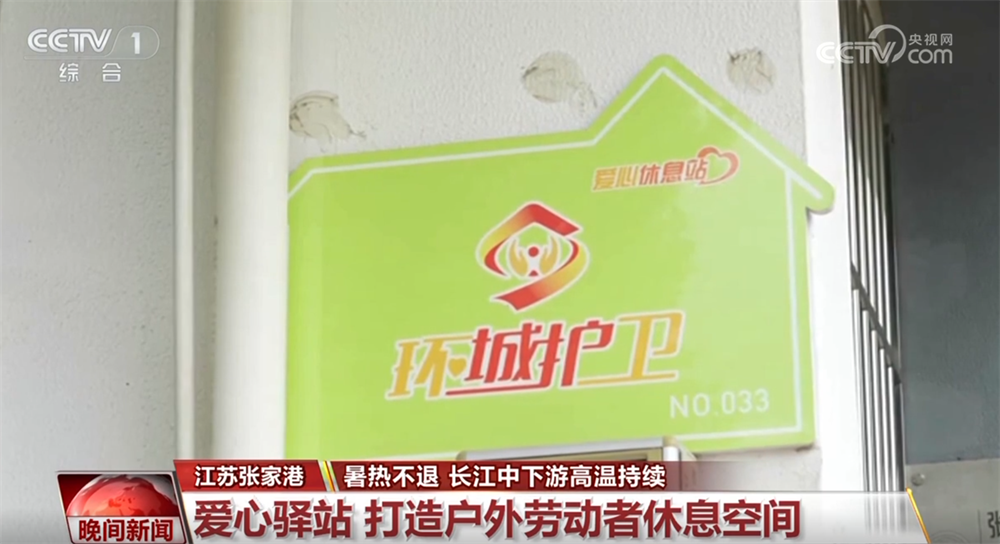 為應對高温天氣,江蘇張家港城管部門開設“環城護衞”愛心休息驛站,供户外工作人員納涼休息。