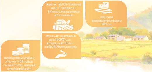 脱貧村正從發展一產向一二三產全面融合轉變。過渡期以來,全國832個脱貧縣均培育形成2—3個特色主導產業,3/4的脱貧人口與新型農業經營主體建立了利益聯結機制,獲得了更多增值收益。越來越多的脱貧羣眾掌握了新技能,鄉村產業根基更穩,發展成色更足。