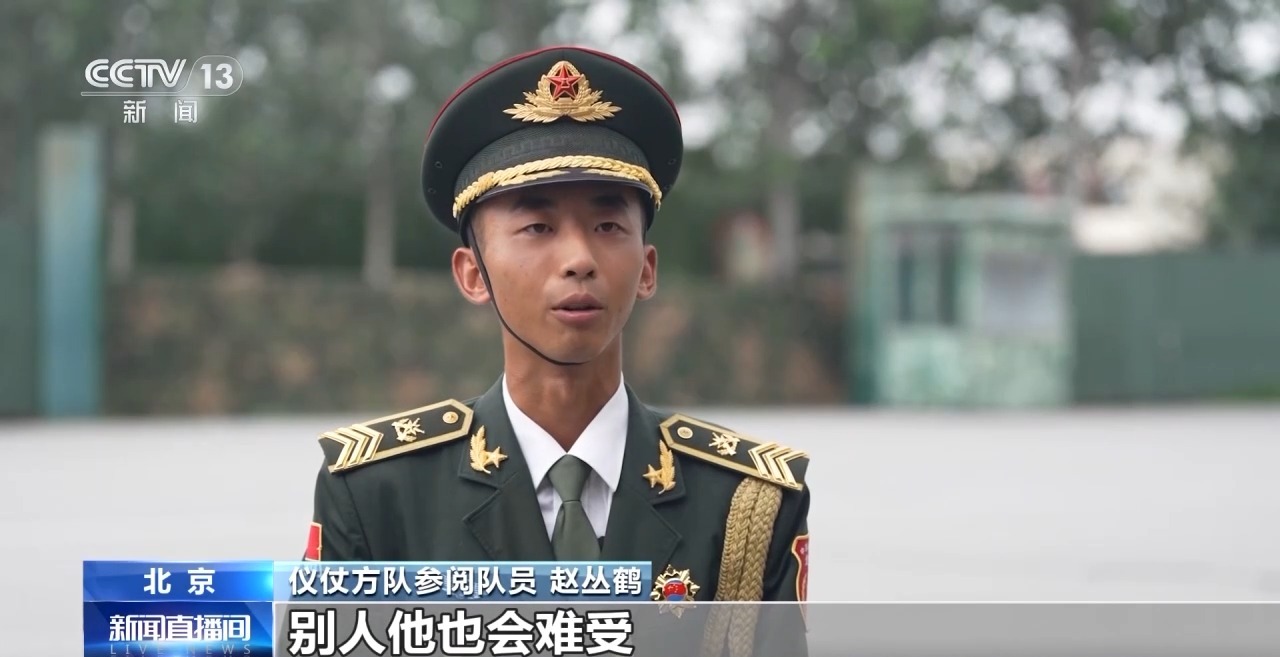 *儀仗方隊受閲隊員 趙叢鶴:*其實當你難受的時候,別人他也會難受,像這個時候我們比拼的就不是身體素質了,我們比拼的是意志力。