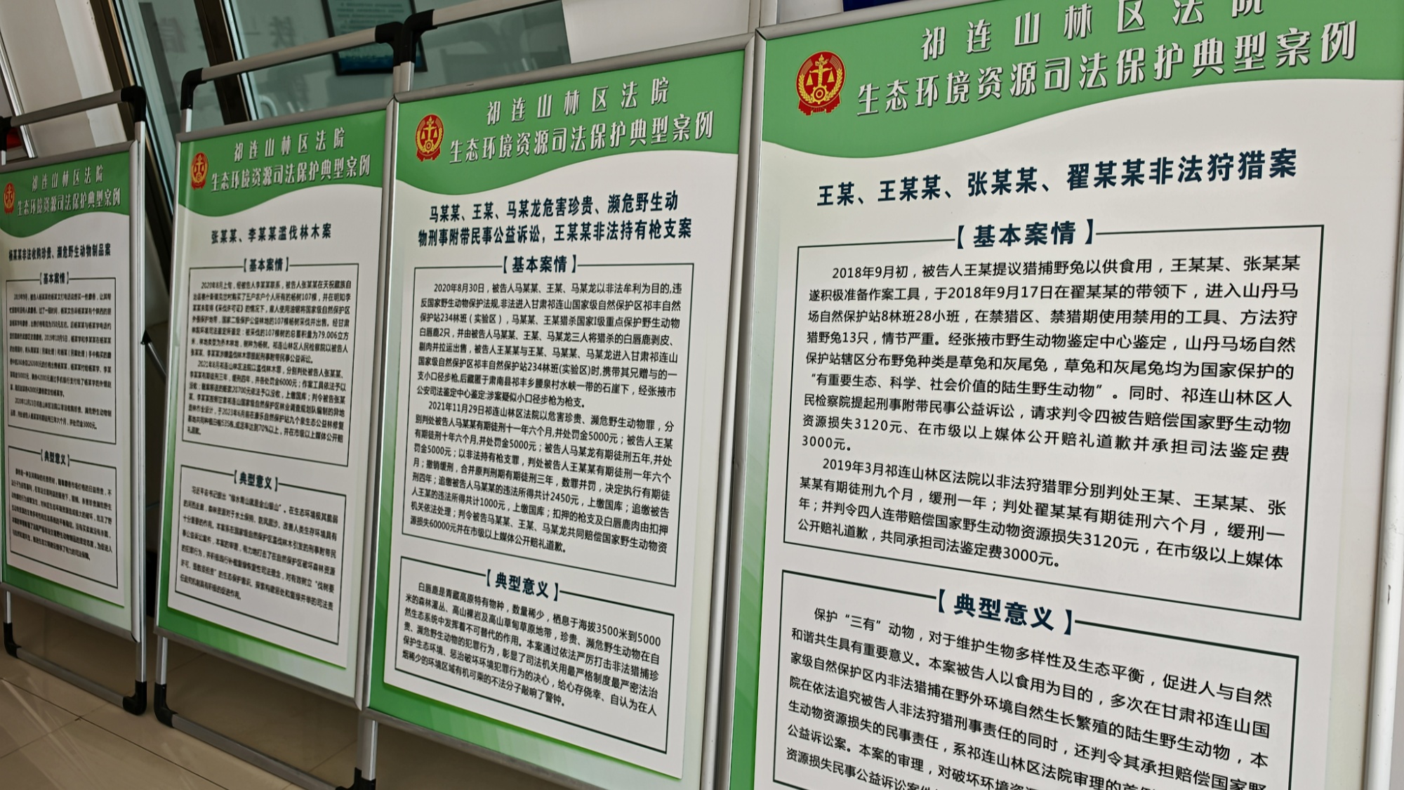 巡迴審判庭的“法庭”從不在屋裏。有時在油菜花田邊支起桌案,法槌一落,“王某前森林草原失火案”的庭審就成了最鮮活的普法課——這案子入選最高人民法院青藏高原生態保護典型案例,法官蹲在牧人身邊,指着草原防火設備説“咋用”,掰着指頭算“失火要擔啥責”,牧民們握着趕牧鞭聽得入神,連羊羣都靜悄悄地伏在遠處。辦案點的展板上,非法採礦、危害珍貴野生動物等10個典型案例圖文並置,像10面透亮的鏡子,照得生態保護的法律紅線清清楚楚。