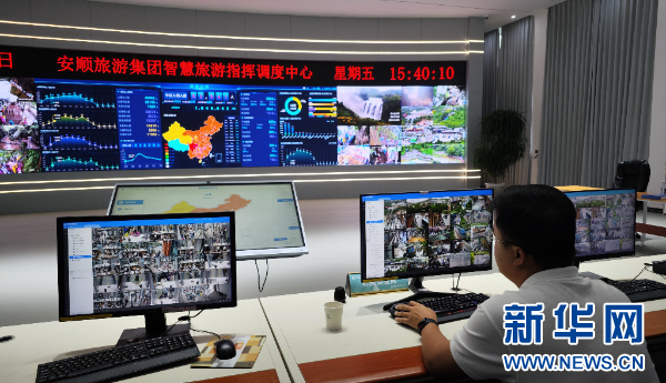 在黃果樹景區檢票處,遊客經過閘機人臉識別,可實現“刷臉”秒級入園。安順旅遊集團智慧旅遊指揮調度中心則通過1000餘路監控與即時數據分析,精準掌握陡坡塘、天星橋等景點的人流熱力與擺渡車調度。這種“全域感知”的智慧管理體系,既是為了保障遊客良好的體驗,也為景區資源調配提供了科學決策依據。